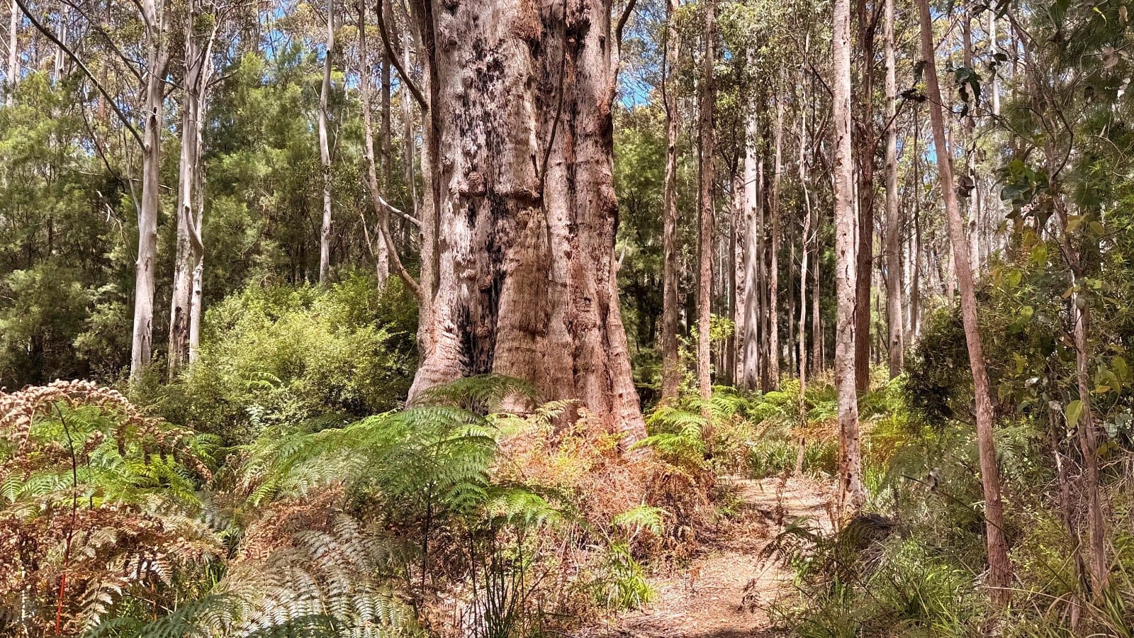 - The tall karri and marri trees rising softly above the understory
